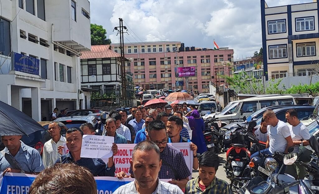 Ki nonghikai Adhoc hapoh ka shatri jong ka Federation of All School Teachers of Meghalaya (FASTOM) mynta ka sngi ki la mih paidbah ban iaid Rally bad ban shong kyllain mungor miet bad sngi ban dawa na ka sorkar ban kyntiew kyrdan ia ki nonghikai skul adhoc sha ki skul deficit. Ha kane ka sngi, ki nonghikai la pynlong ia ka jingiaid rally na madan Malki bad la pynkut ha kane kajuh ka jaka da ka jingshong kyllain morngor ba khlem buh por. Haba kren sha ki lad pathai khubor u Vice President ka FASTOM u bah Sanborn Jungai ula ong ba lada ka sorkar kam lah ban pynbeit kloi ia ki jingdawa jong ki ban rah noh ia ki nonghikai Adhoc sha ki Deficit System kaba kynthup naduh ka jingsiew, kin sa shim da ki sienjam ba kham tyngeh. U nongialam ka FASTOM ula ong ba lada ka sorkar ka don ia ka mon kam don jingeh ha ka liang ka pisa tyngka namar dang shen ka sorkar ka la tyrwa ban siew hi wat  ia ka tulop jong baroh ki nongtrei jong ki Autonomous District Council ha ka jylla.