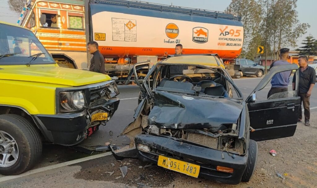 Ha ka jingjia iatyngkhuh kali, 3 ngut ki briew ki la mynsaw, hadien ba kawei ka Tata Sumo ka la ia tyngkhuh markhmat bad ka Maruti 800, kaba la jia ha u surok Shillong Bypass hajan ka shnong Umroi Nongrah ha ka por 4 shiteng eiei janmiet. Katkum ka jingtip ba la iohlum, la iathuh, ba kane ka jingjia tyngkhuh kali kaba la jia hapdeng ka Tata Sumo kaba don ia u number ML 06 A 8396 kaba dang leit sha Bhoirymbong pyrshah bad ka Local Maruti 800 kaba don ia u number ML 05 L 1483 kaba dang mih na Bhoirymbong.